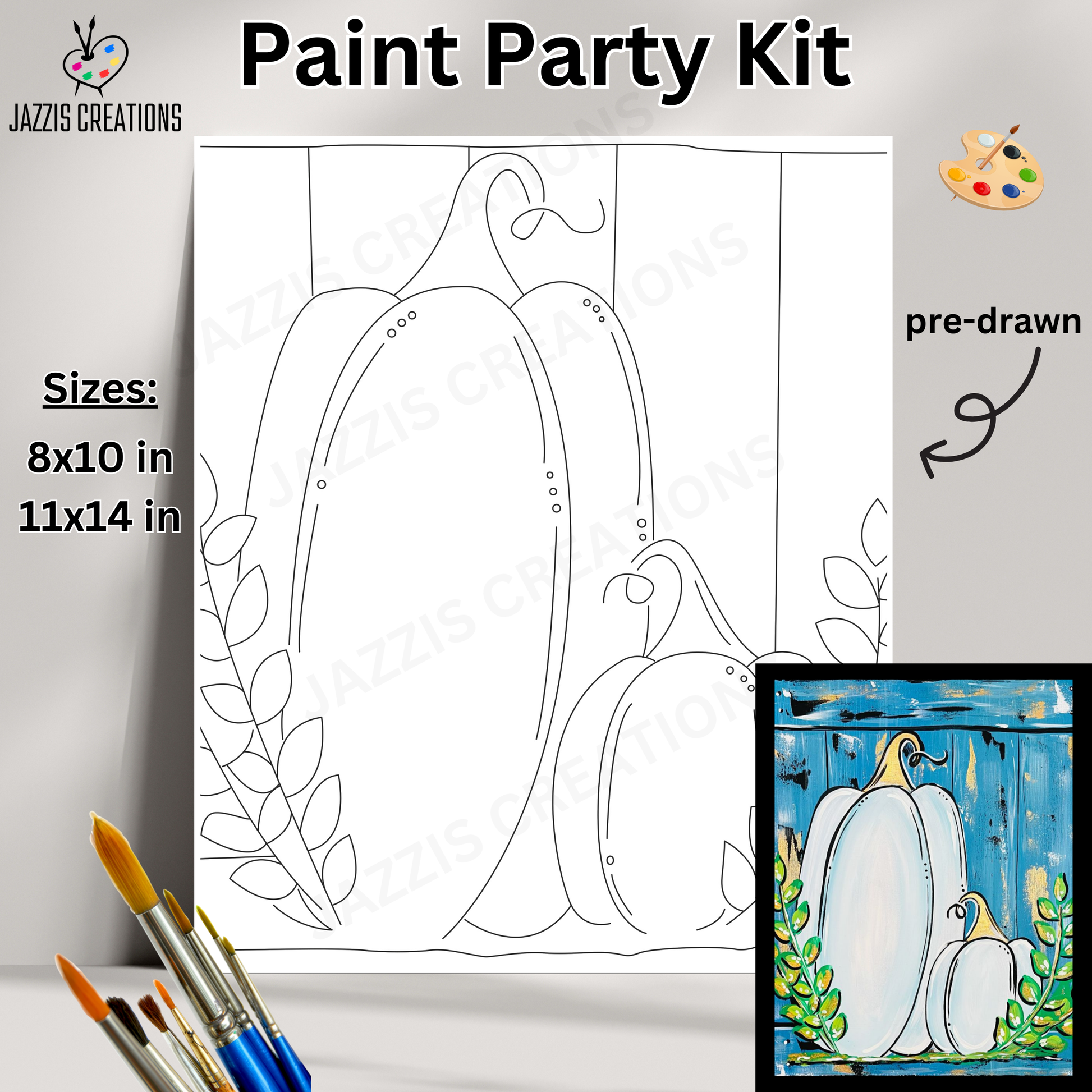 ππ Rustic Charm! Autumn Blue & White Pumpkins β Paint Party Kit
