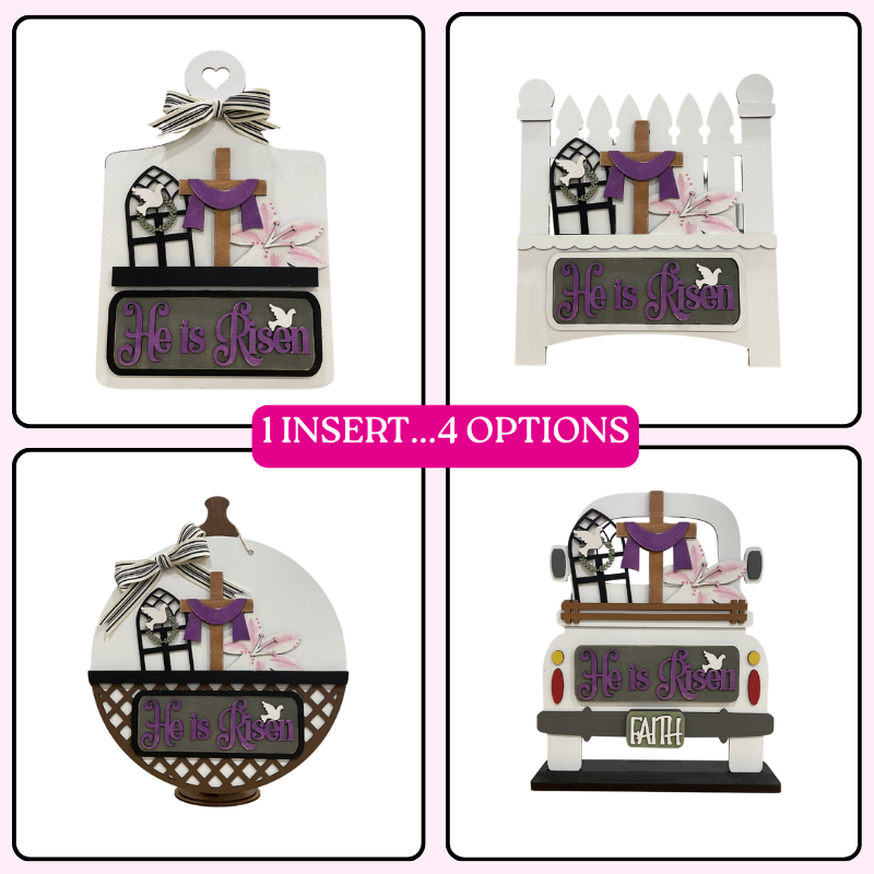 Add a beautiful touch of faith and spring to your interchangeable Farmhouse Truck decor with this He is Risen DIY Paint Insert Kit! Perfect for Easter, Spring, or year-round inspiration.