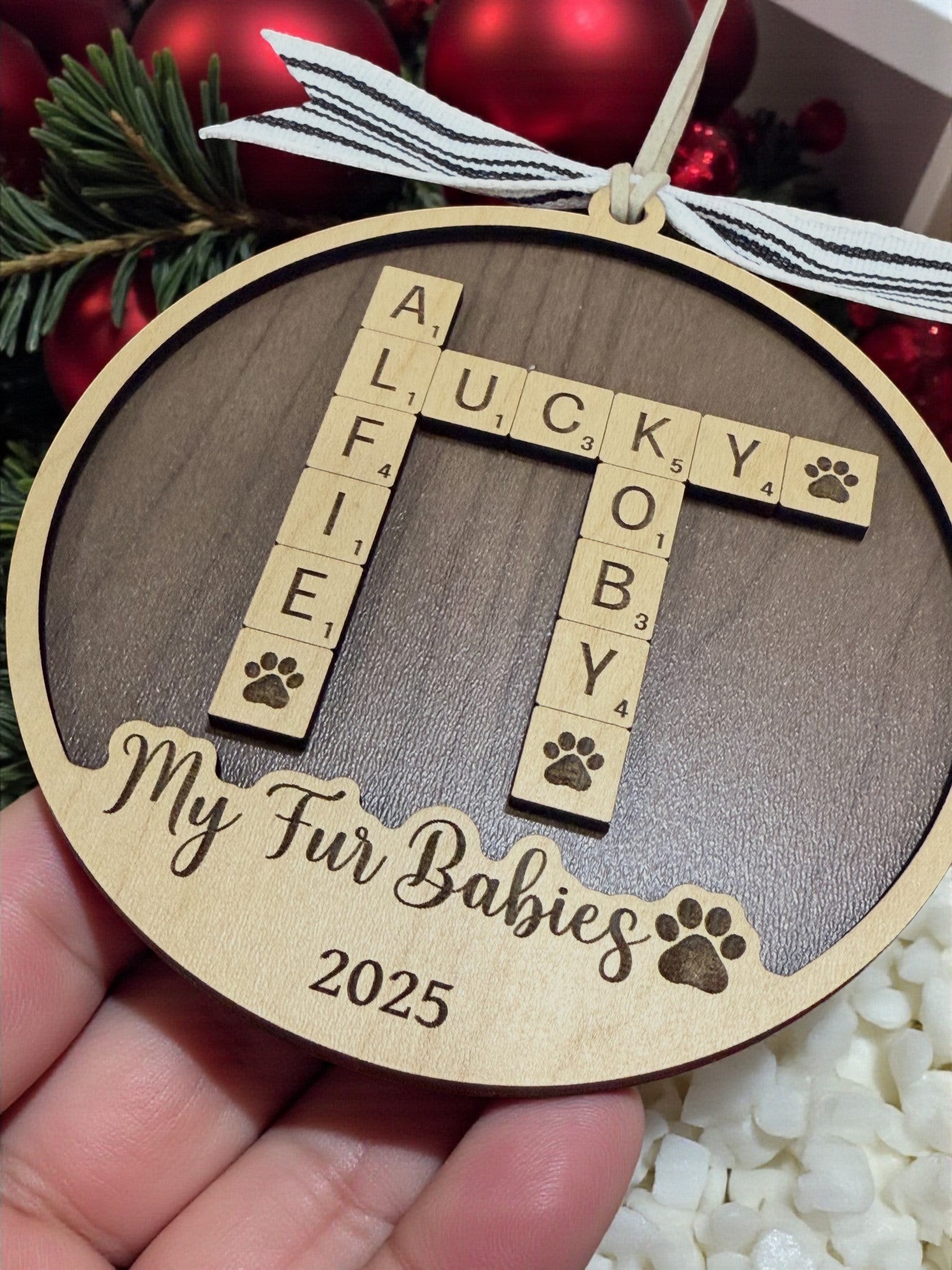 Personalized Scrabble Name Ornament – Custom Family or Pet Names, Up to 5 Names Included, 2025 Christmas Wooden Ornament