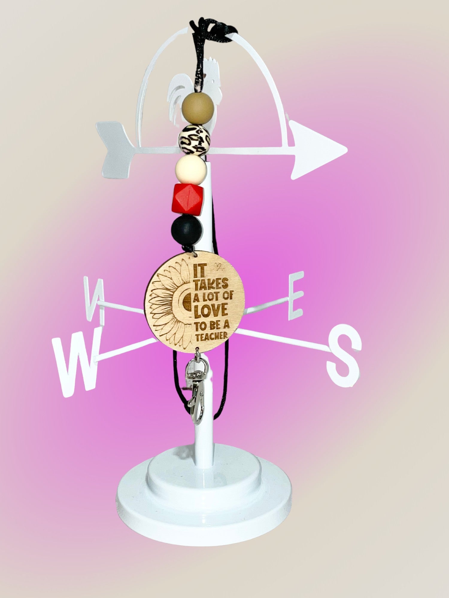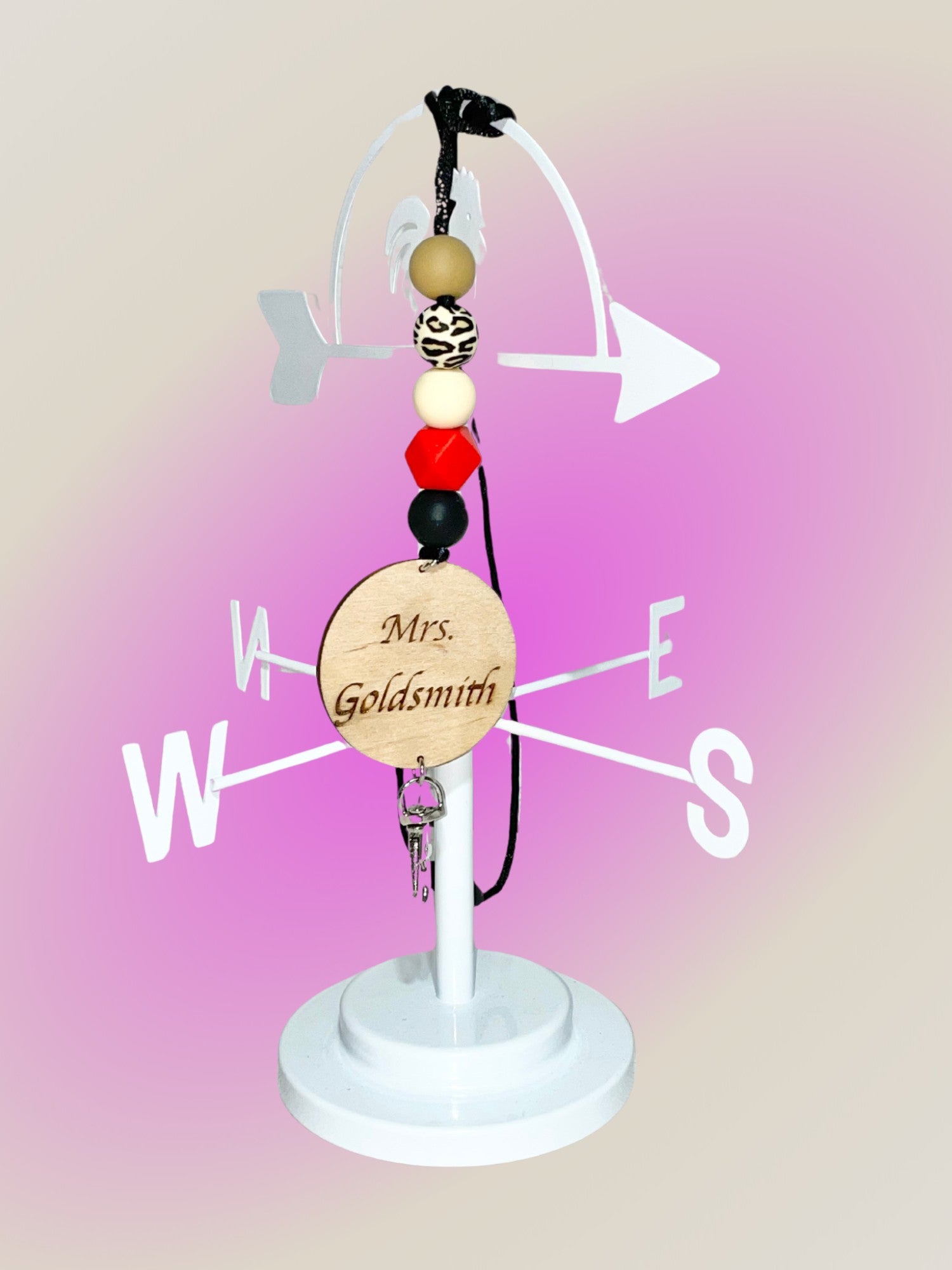 Teacher Beaded Wristlet Keychain | Personalized Gift with Engraved Wood Charm & Silicone Beads